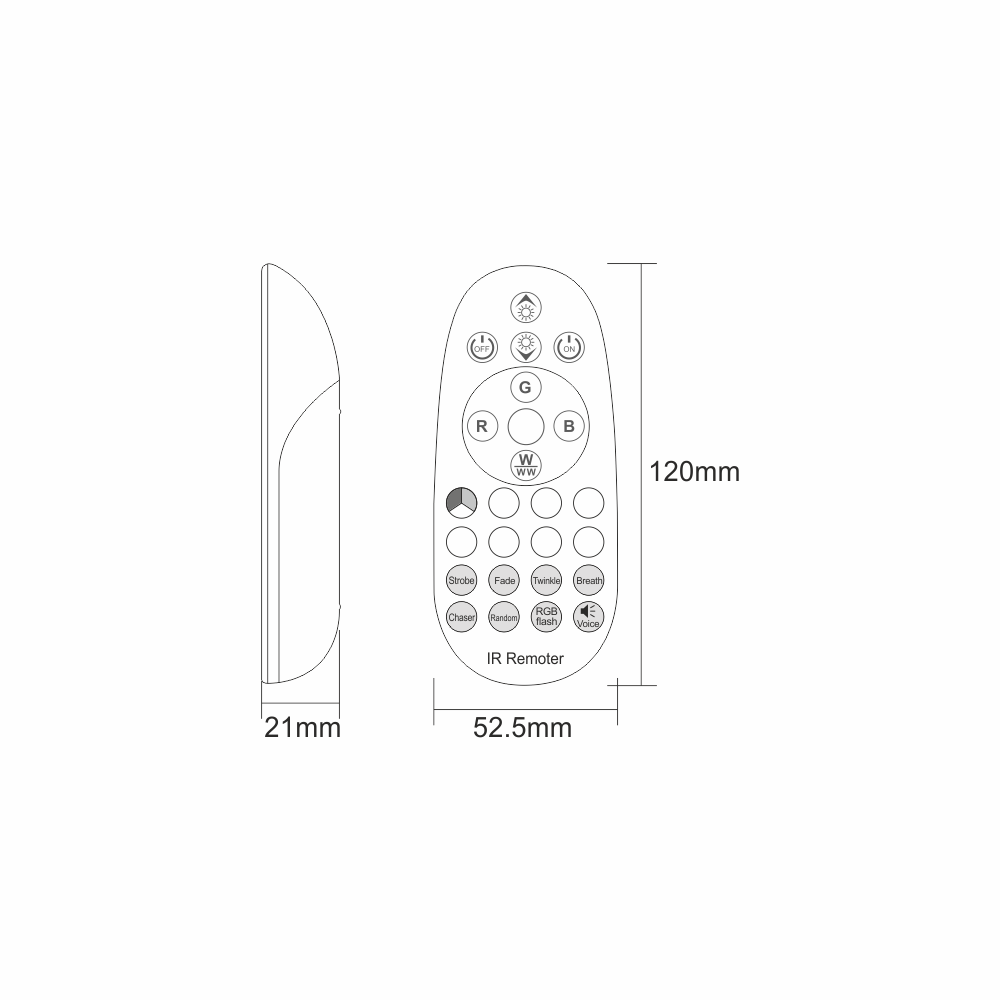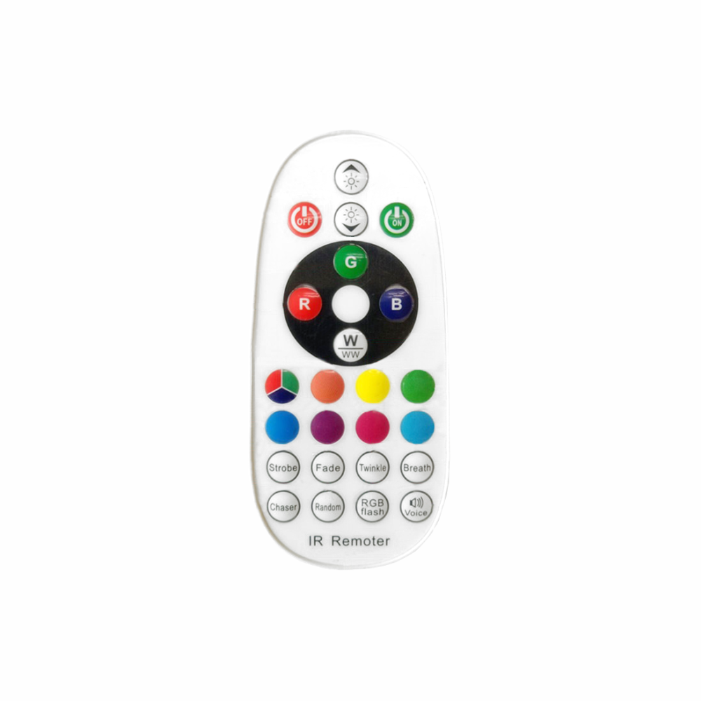 - Static R, G, B and White - Use the buttons to directly select the desired colour. Press the White button to change between Cool White and Warm White.