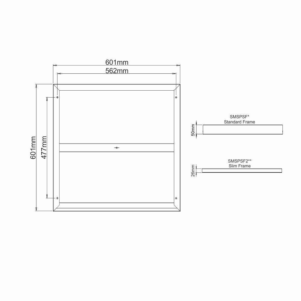 Surface mounted frame for Panel Lights, used to fix the panel light in the ceiling or on the wall.